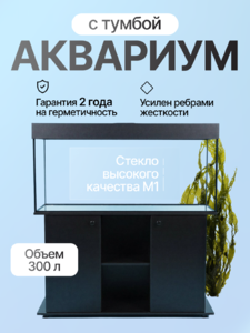 Хит, Аквариум 300 л. прямой с пластиковой крышкой + диодный светильник + усиленная тумба