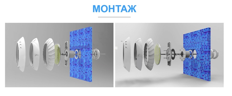 Монтаж светильника в бассейн (врезка, установка светильника в пластиковую чашу или сборный каркасный бассейн, подключение трансформатора к светильнику)