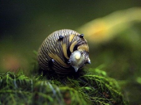 Улитка Неритина солнечная (Clithon corona)Улитка солнечная неритина, или как ее еще называют – неритина солнышко, обитает в водоемах Индонезии, Малайзии, Таиланда и Филиппин. Этих улиток можно встретить в устьях небольших рек и лагун, в местах с песчаным и каменистым дном. Данные очень нетребовательные и их под силу содержать даже начинающим аквариумистам. Clithon corona имеют сферическую раковину с небольшими иглами, которые очень ломкие и могут сломаться при небрежном обращении с улиткой, но если такое случится, то расстраиваться не стоит – это никак не отражается на здоровье улитки. Раковина окрашена в зеленоватый цвет. Всю ее площадь покрывают тонкие полосы. Половые различия слабовыраженные, самцы немного меньше самок их размер составляет около 1,5 см, тогда как самок около 1,8 см. Учитывая малый размер улиток для их содержания подходит нано-аквариум небольшого объема. В аквариуме объемом 10 л можно содержать до 15 солнечных неретин. Данные улитки приносят неоценимую пользу в аквариуме неустанно очищая его от водорослей. По большому счету улитки солнечные неритины являются одними из самых эффективных моллюсков по борьбе с водорослевым нашествием в аквариуме. Они с удовольствием уничтожают даже такие водоросли как ксенококус, которые и механическим путем снять довольно трудно и при этом совершенно не наносят вреда аквариумным растениям. Параметры воды, следующие: температура 22-28°С, жесткость dH 6-20°, кислотность pH 6,8-8,5. Улитки нормально себя чувствуют, как в пресной, так и в солоноватой воде. Питаются неритины зелеными и бурыми водорослями, причем уничтожают они их не только со стекол аквариума и декораций, но и с листьев растений, совершенно не нанося вреда последним. Улиток можно подкармливать предварительно ошпаренными кипятком листья салата, ломтики кабачков и огурцов, зеленым горошком, а также специализированными кормами, содержащими спирулину. Разводить солнечных неритин в аквариумных условиях задача не простая, т.к. размножаются они в солоноватой воде и для этого нужно создать соответствующие условия, что далеко не всегда удается сделать. Многие аквариумисты экспериментируют с вариантами разведения изменяя соленость воды и инкубацию яиц во влажном песке в течение 3-4 недель при определенном температурном режиме. Дают ли положительный эффект такие действия доподлинно не известно и на наш взгляд гораздо проще приобрести экспортируемых улиток, чем заморачиваться с воссозданием уникальных условий для нереста, при этом затратив уйму времени. Так по отзывам некоторых аквариумистов, время между стартом эксперимента по разведению улиток и появлением их личинок занимает около 3 мес., а ведь еще нужно чтобы они выжили и окрепли… Продолжительность жизни солнечной неритины в аквариумных условиях составляет около 3 лет. |